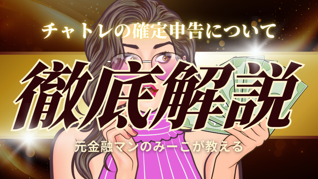今回は元金融マンのみーこがチャトレの確定申告について徹底解説をするよちょっと長くなるかもしれない … 続きを読む 【完全版】チャトレの確定申告についてその1